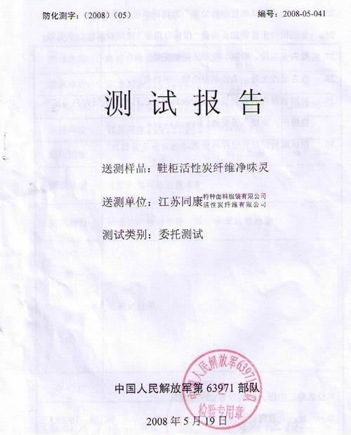 鞋柜活性炭纖維凈味靈檢測報告