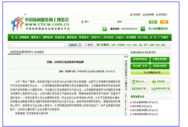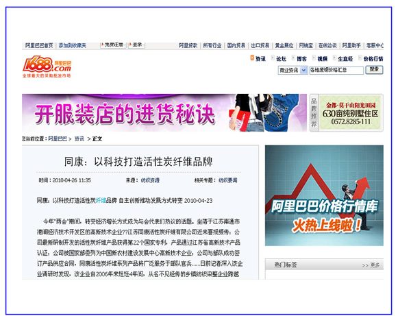 阿里巴巴、中華紡織網——同康:以科技打造活性碳纖維品牌