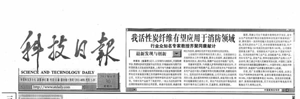 2011年6月30日科技日?qǐng)?bào),同康活性炭纖維有望應(yīng)用于消防領(lǐng)域----行業(yè)眾知名專家教授齊聚同康獻(xiàn)計(jì)獻(xiàn)策。